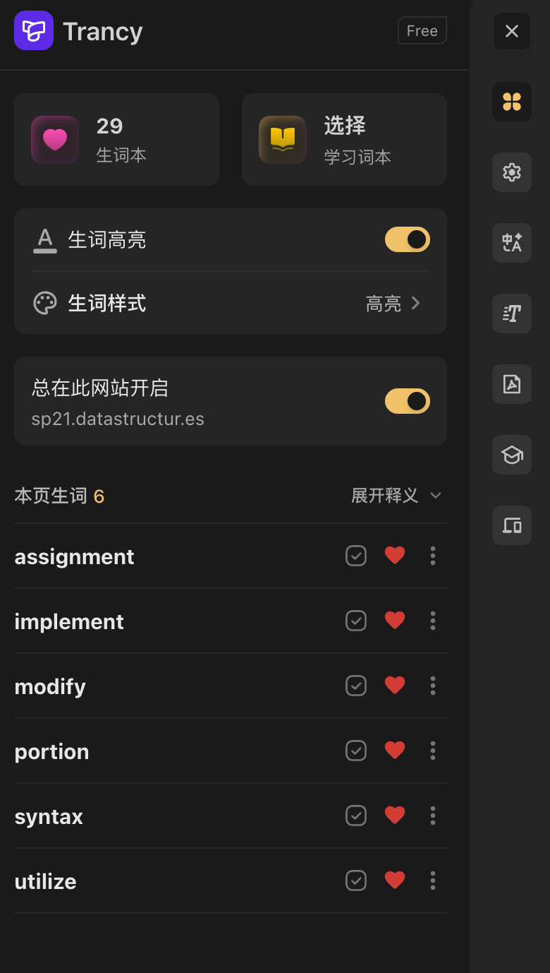 这里推荐一个翻译的插件 Trancy , 你可以在各大浏览器的拓展里下载到 现在展示一下本插件的基本功能,主要包含如划词划句翻译、视频双语字幕、生词本等功能