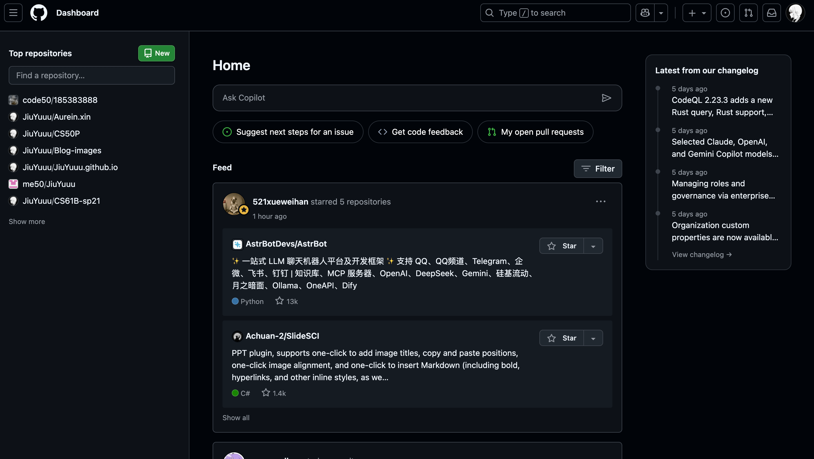其次,AI 将是你学习路上最好的老师之一,学会向 AI 提问会极大提升你学习的效率。相当一部分问题你问 AI 几十秒钟就可以立马解决,而去问社群、朋友,首先他们理解问题需要时间,回答你的疑问也需要时间,效率会明显的降低。 目前主流的模型有很多,在此推荐一些国内的优秀模型:Kimi、通义千问、DeepSeek。 同时也非常推荐国外的大模型,如 GPT、Gemini、Copilot等。在处理代码能力上国外几家大模型的能力还是优于国内的。
