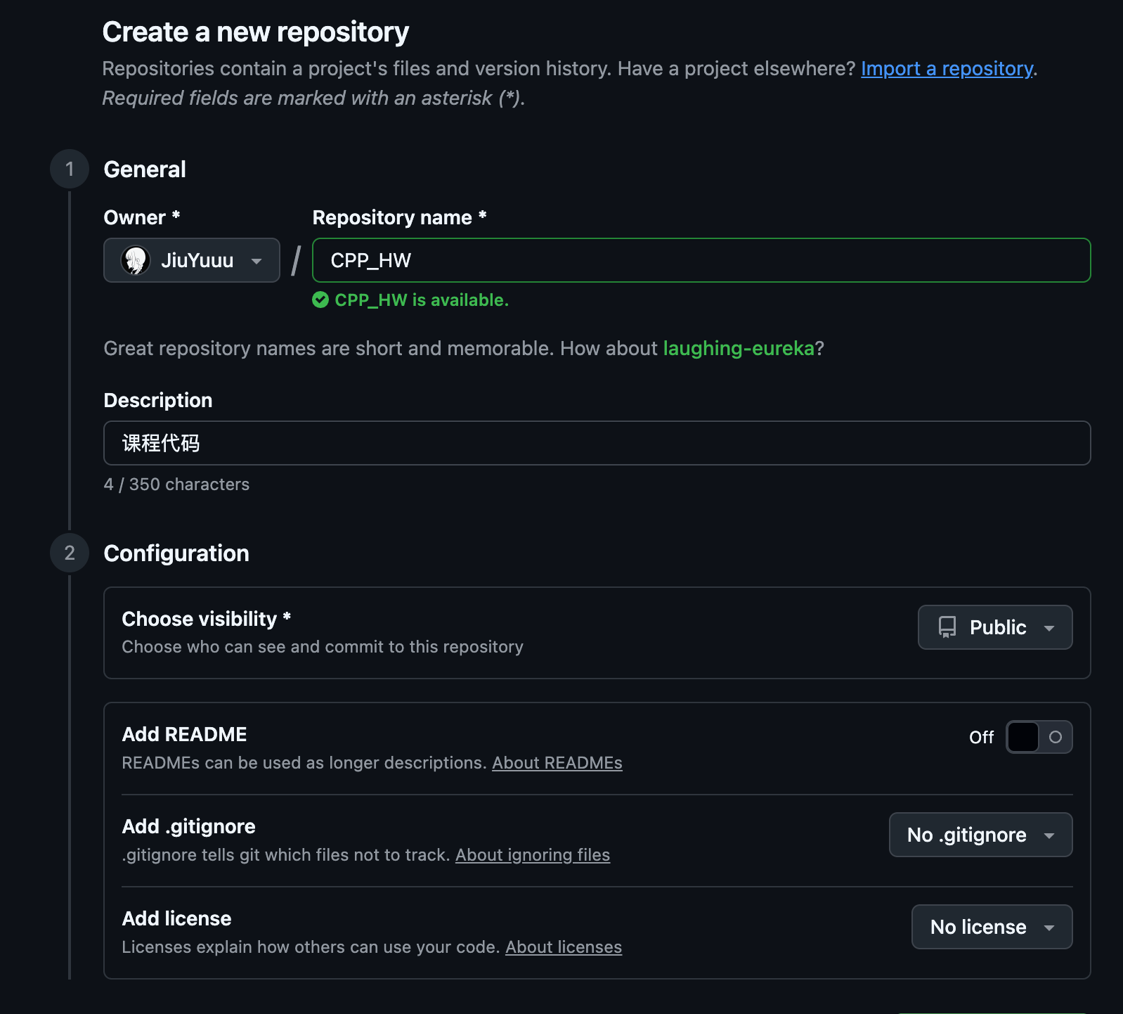 填写基本信息,之后你的代码就可以上传到这个仓库了
