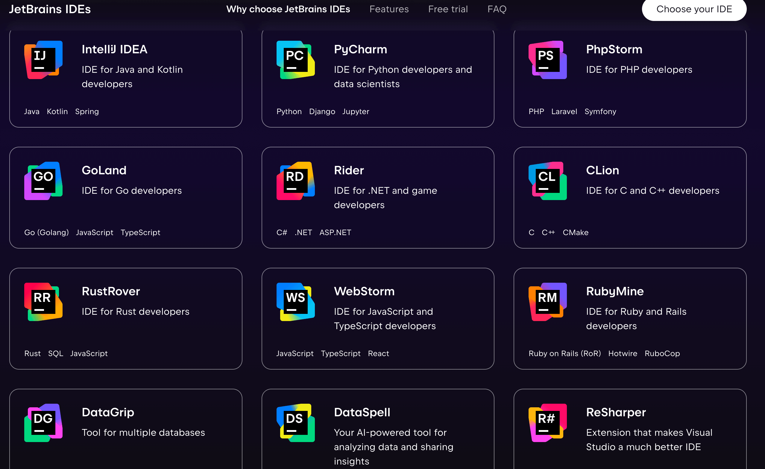 看到上面的软件了吗,想写啥就选啥,环境也不用你配啥都不用干,开箱即用 下载地址:JetBrains